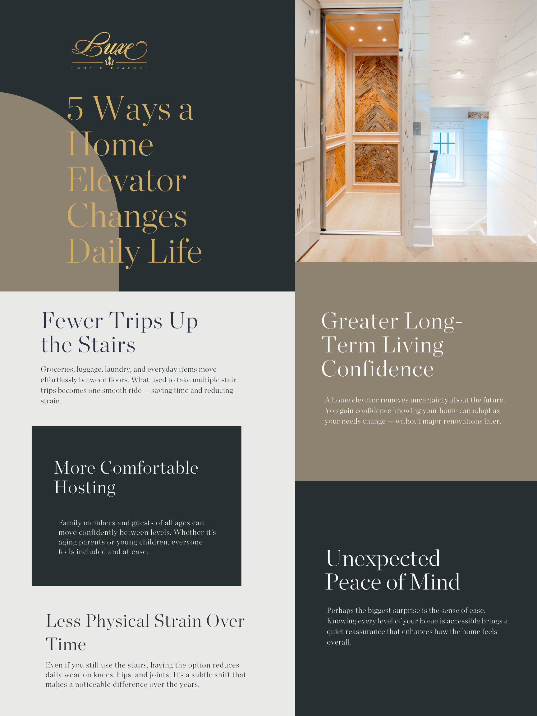 Many homeowners describe a shift from “starter home” to “forever home.” An elevator brings long-term confidence.