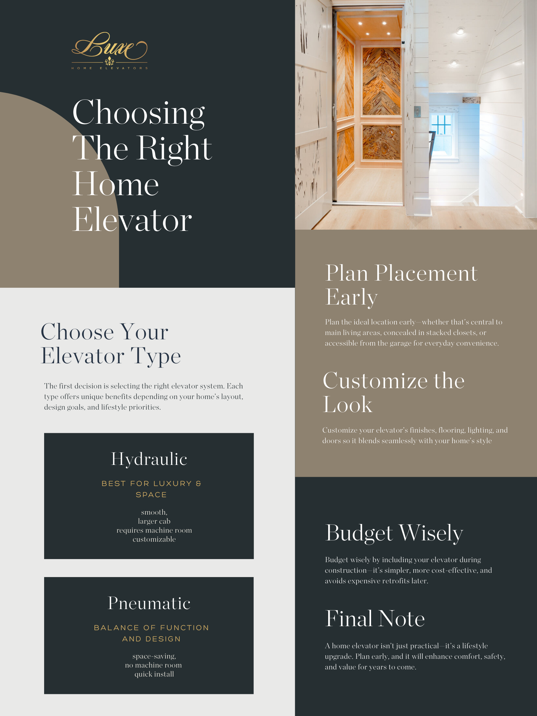 Installing a home elevator during the construction of a new custom home is often easier and more cost-effective than retrofitting one later. But how do you choose the right elevator for your space, lifestyle, and goals?